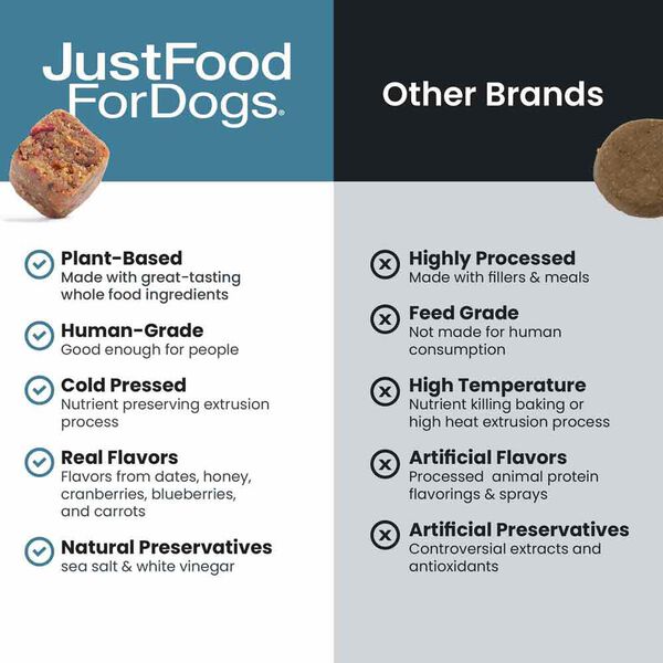 Most dog supplements on the market contain some sort of filler or preservative. At JustFoodForDogs, we have higher standards when it comes to the health of our four-legged friends. For optimal health and wellness, our dogs deserve delicious-tasting health supplements without fillers, artificial preservatives, or synthetics.