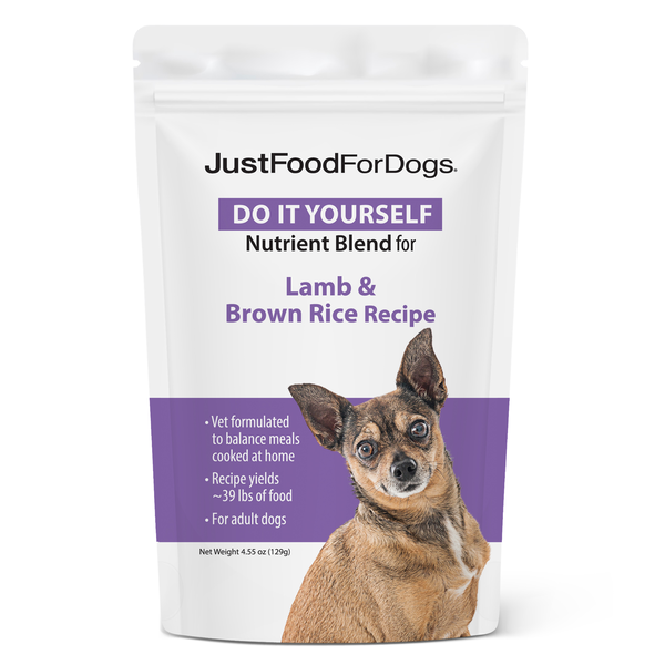 Our Lamb & Brown Rice Recipe is a great option for adult dogs, older dogs, and dogs with smaller appetites. With our Do It Yourself Nutrient Blend, you can make this nutritionally balanced* recipe fresh from your kitchen.